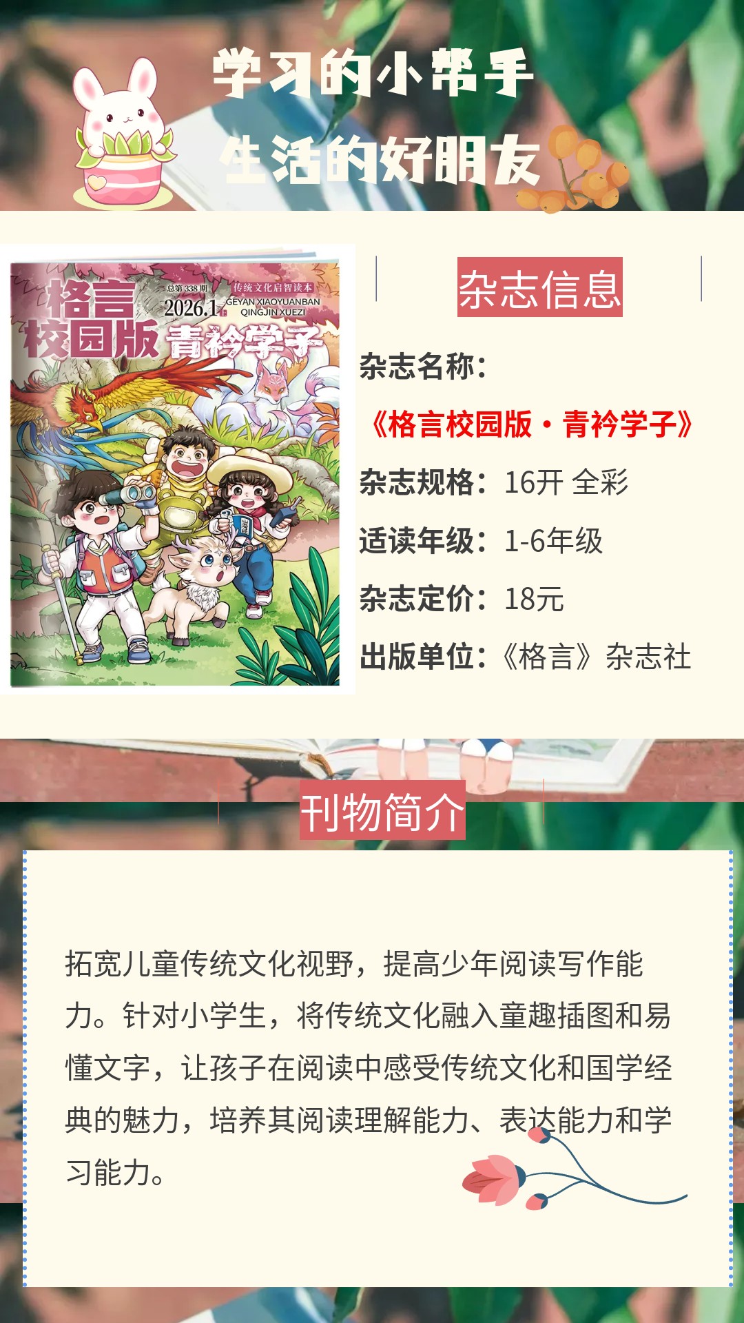《格言(校园版)青衿学子》2026年7-12月(6期)